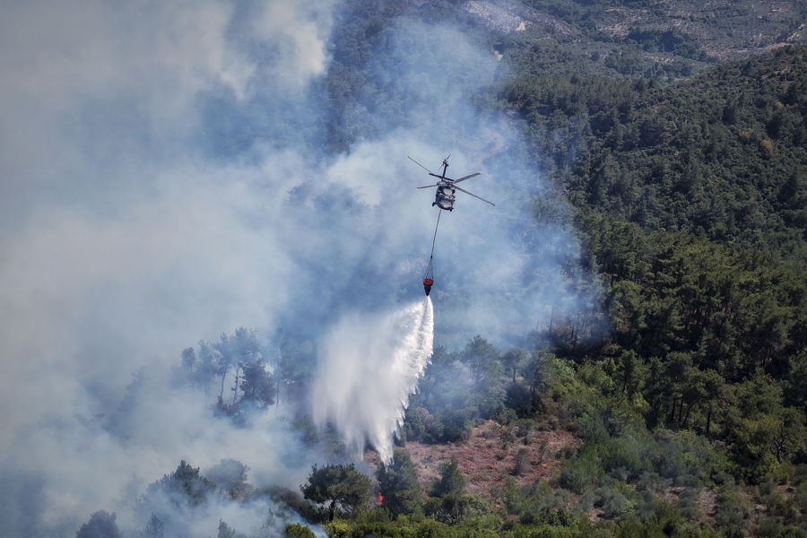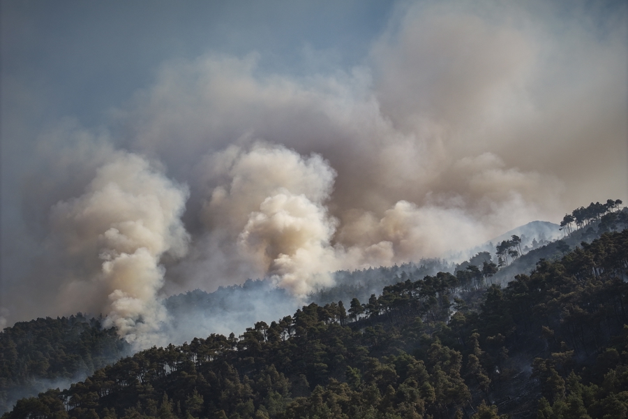 7月7日,叙利亚拉塔基亚拍摄的山火燃烧产生的浓烟。